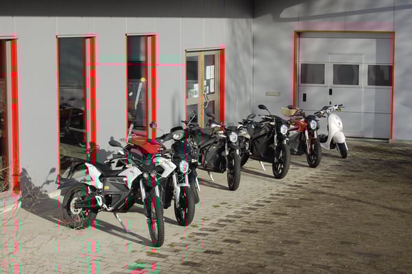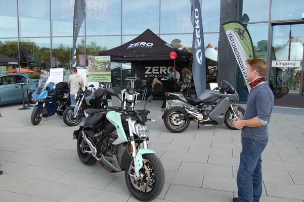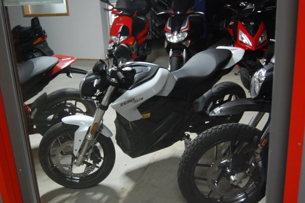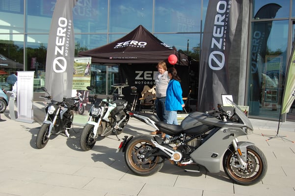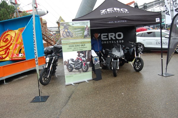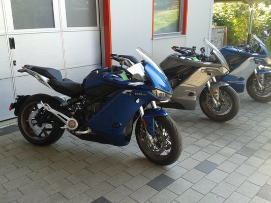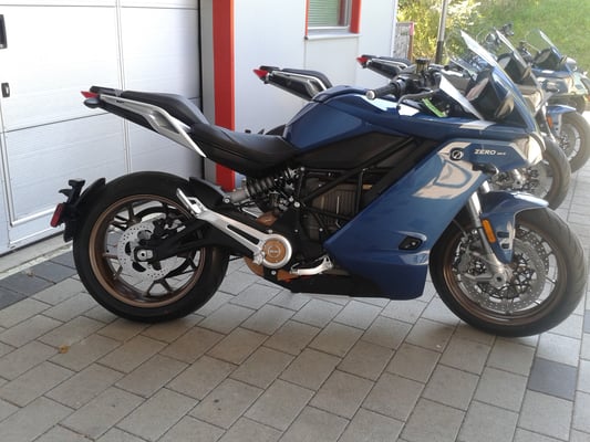 ZEROs SR/S vor unserem Showroom (jetzt Probefahrt vereinbaren) ZERO SR/F steht auch zur Verfügung.