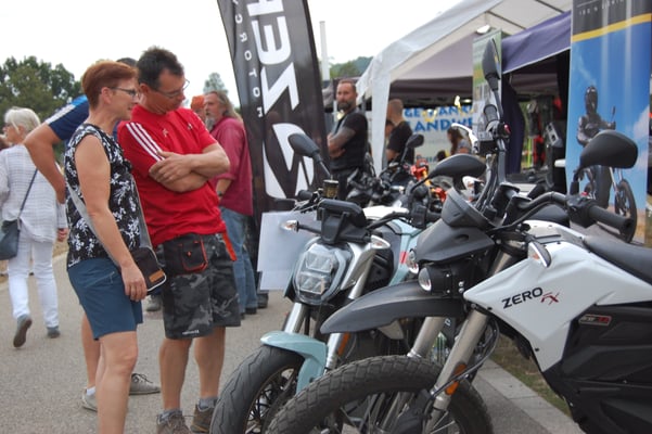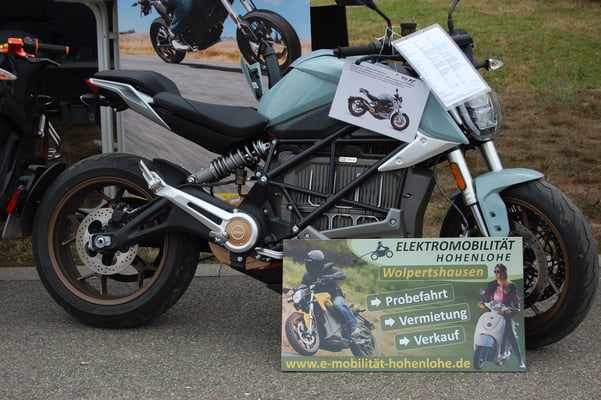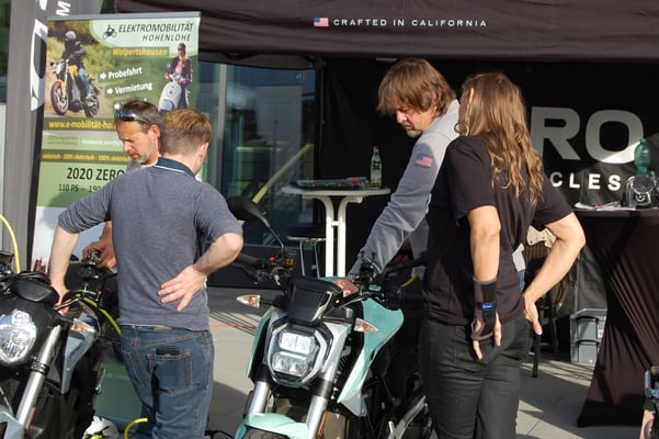 Hier haben die Teilnehmer nach einer kurzen Vorstellung der ELEKTROMOBILITÄT HOHENLOHE die mitgebrachte ZERO SR/S und die ZERO SR/F Probe gefahren. Allen Probefahrern hat es sichtlich erfreut, die geballte Kraft ohne Krach und Gestank zu er - fahren. Weitere Kontakte zur Erkundung dieser anderen Art der Fortbewegung auf 2 Rädern sind ausdrücklich erwünscht.